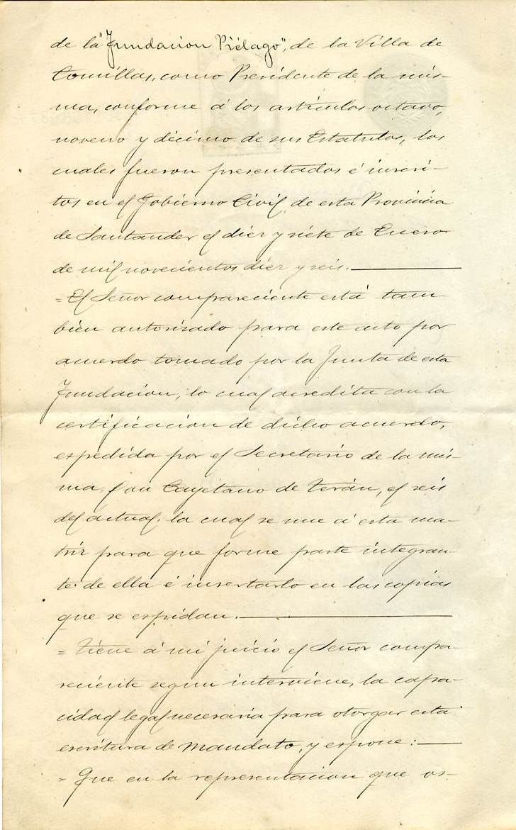 Copia de la escritura de mandato otorgada por D. Enrique Sánchez de Movellán a Jose Mani y Comerma 1917