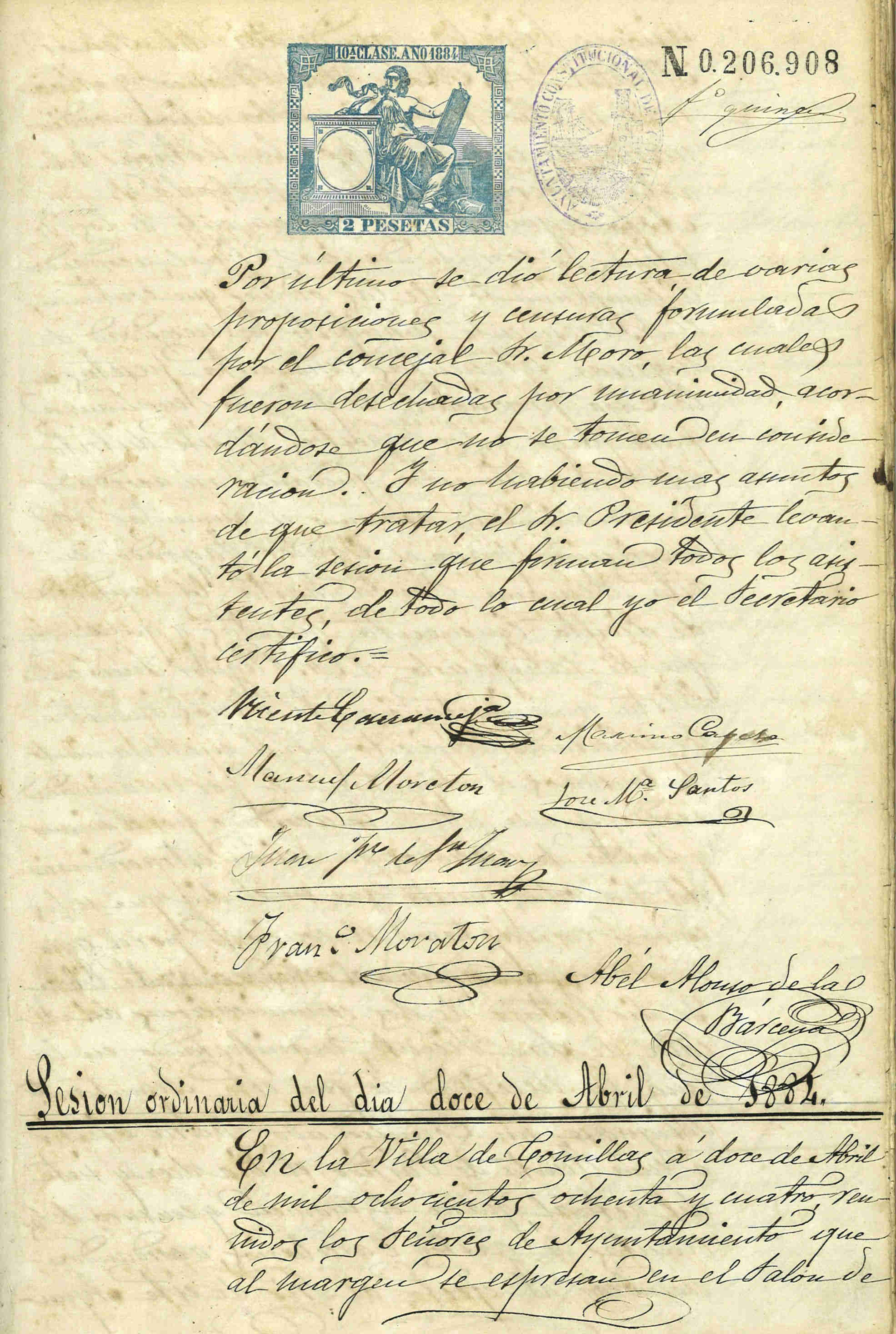 Libro de actas 1884